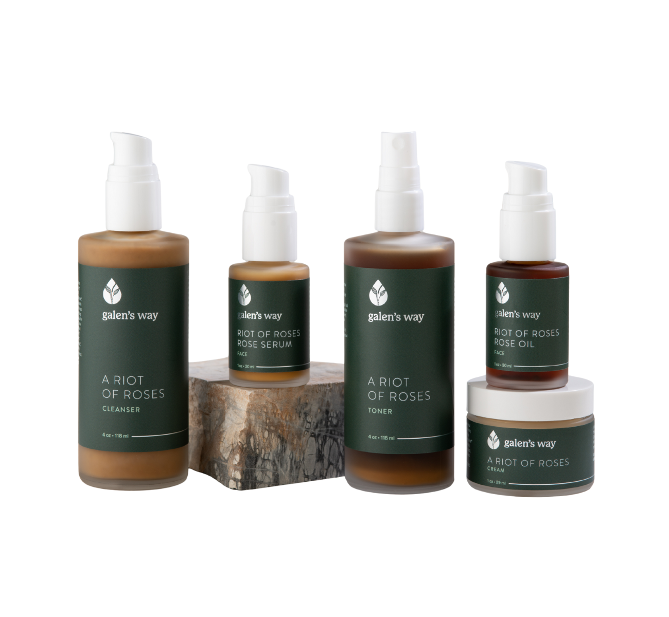 Enjoy the full Riot of Roses skincare line including our exfoliating cleanser, plant-rich toner, elegant serum, hydrating oil and sophisticated cream.