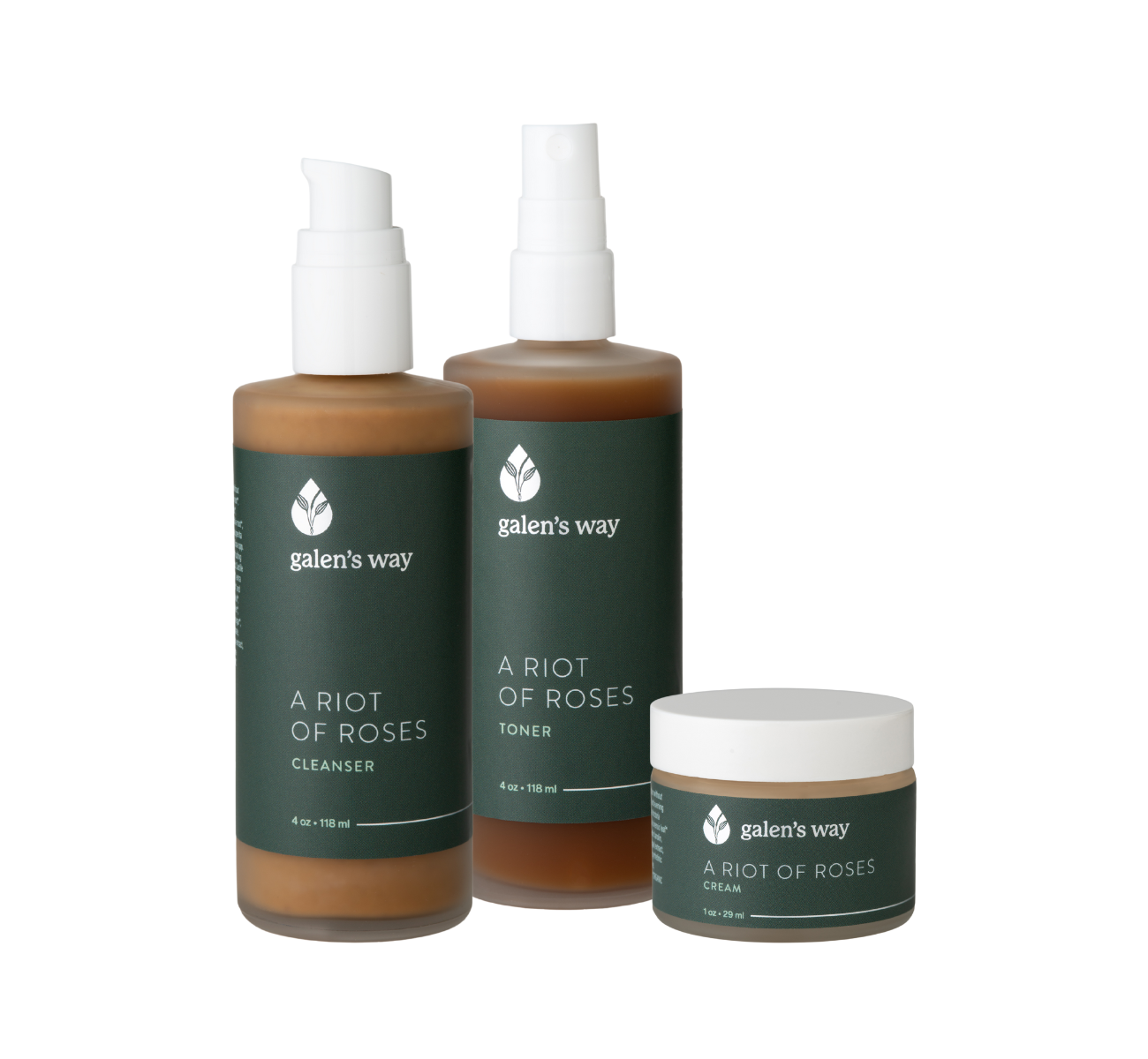Enjoy the staples in A Riot of Roses skincare line including our exfoliating cleanser, plant-rich toner and sophisticated cream.